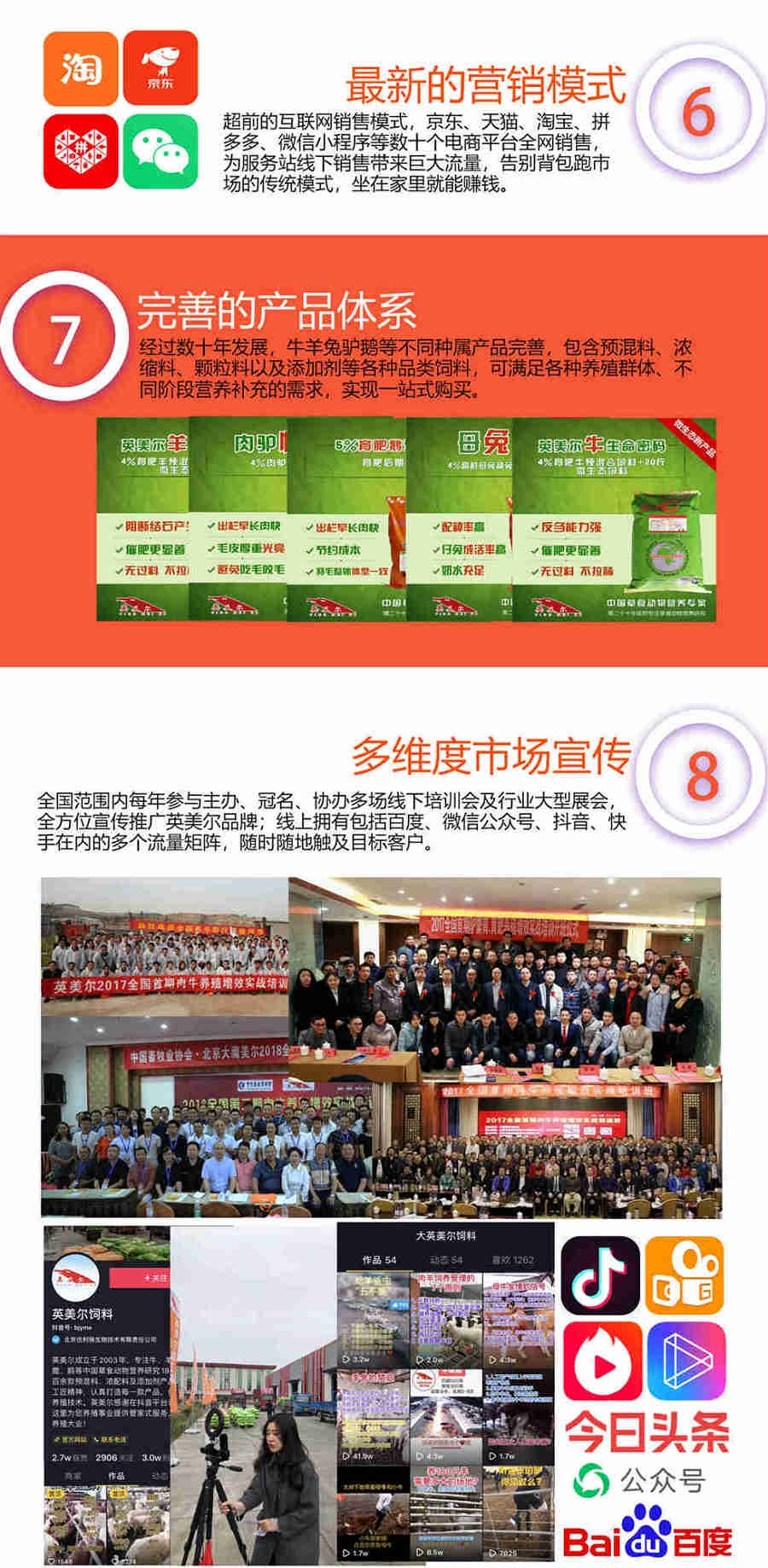 英美尔拥有抖音、快手、微信视频号、英美尔易购等多个在线技术直播平台,免费为全国养殖户进行远程技术指导。